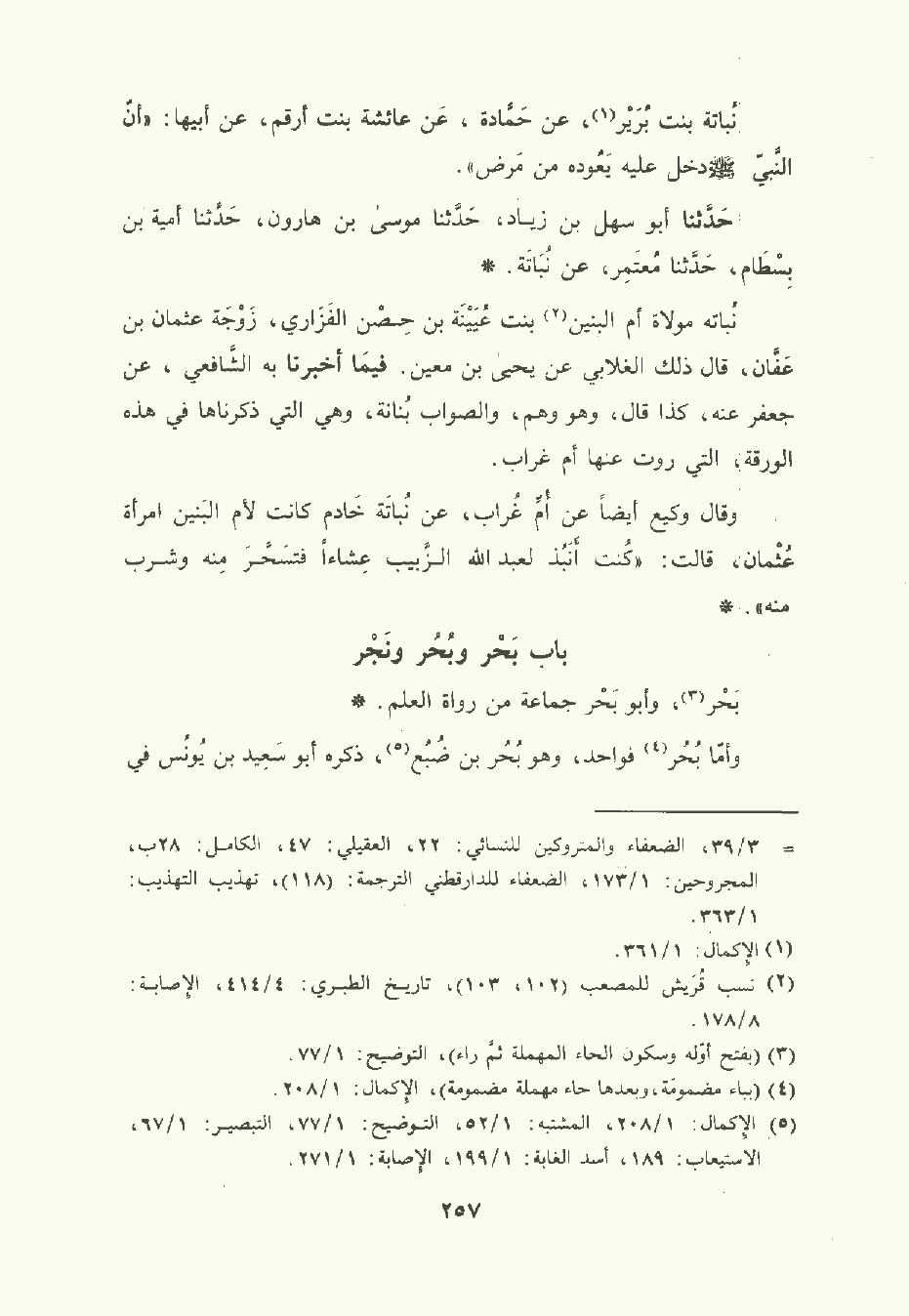 نُبَاتَة مولاة أم البنين بنت عُيَيْنة بن حِصْن الفَزَاري زوجة عُثْمان بن عَفَّان قال ذلك الغَلابي , عن يَحْيى بن مَعِين. فيمَا أخبرنا به الشَّافعي , عن جَعْفَر عنه كذا قال وهو وهم والصواب بُنانة وهي التي ذكرناها في هذا الورقة التي روت عنها أم غراب.