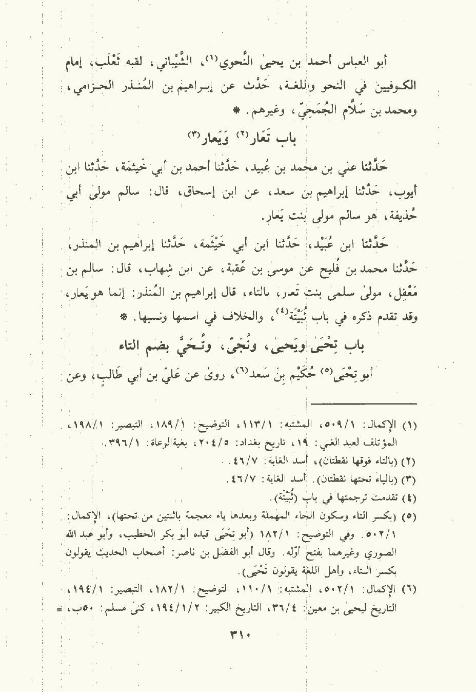حَدَّثَنا ابن عُبَيْد , حَدَّثَنا ابن أبي خَيْثَمَة , حَدَّثَنا إبراهيم بن المُنْذر , حَدَّثَنا مُحمَّد بن فُلَيْح , عن موسى بن عُقْبَة , عن ابن شِهَاب قال: سالم بن مَعْقِل مولى سلمى بنت تَعَار بالتاء قال إبراهيم بن المُنْذر: إنما هو يَعَار وقد تقدم ذكره في باب ثُبَيْتَة والخلاف في اسمها ونسبها.