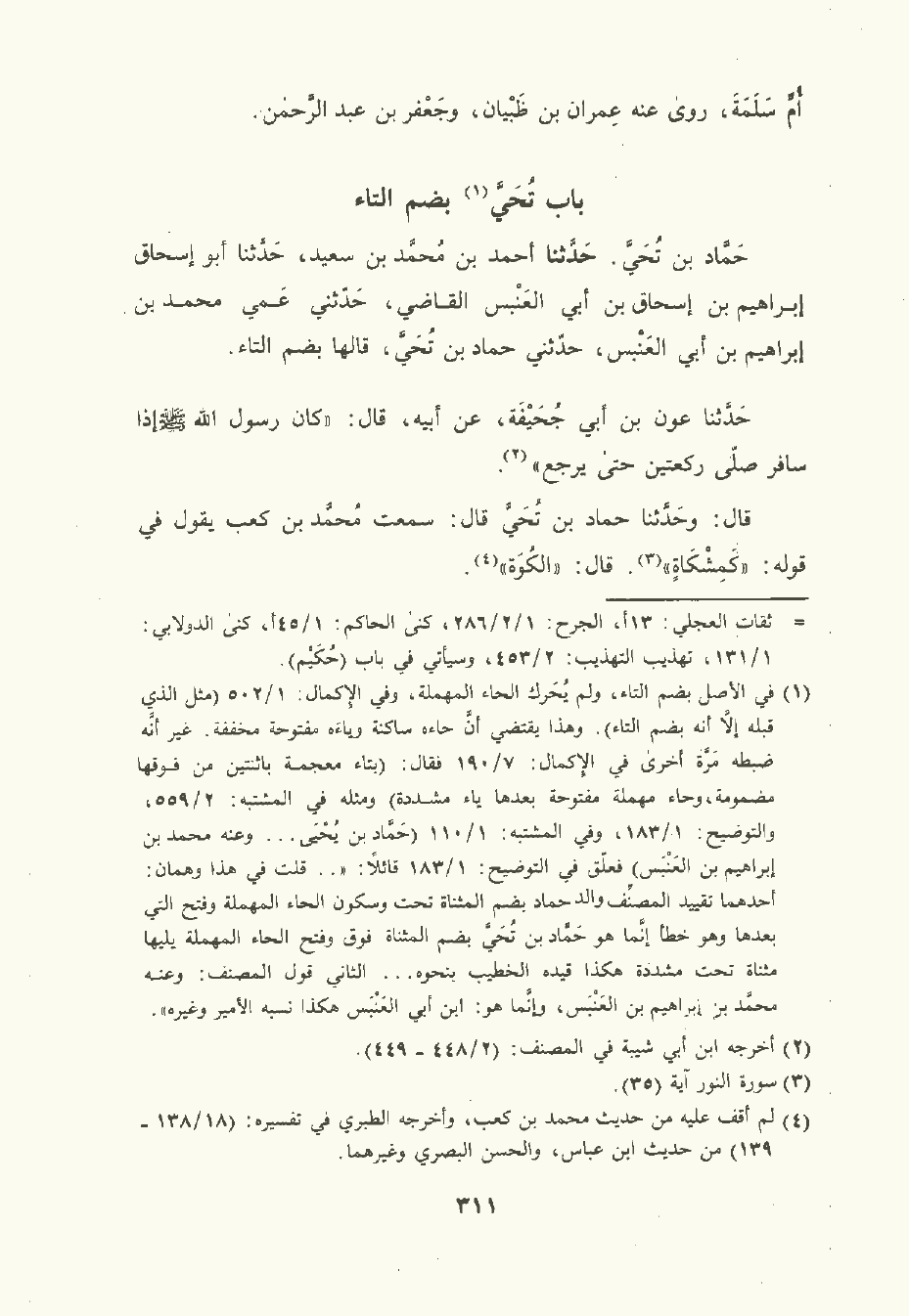 حَمَّاد بن تُحَي. حَدَّثَنا أحمد بن مُحمَّد بن سَعِيد , حَدَّثَنا أبو إسحاق إبراهيم بن إسحاق بن أبي العَنْبس القاضي حَدَّثني عمي مُحمَّد بن إبراهيم بن أبي العَنْبس حَدَّثني حَمَّاد بن تُحَيّ قالها بضم التاء.
