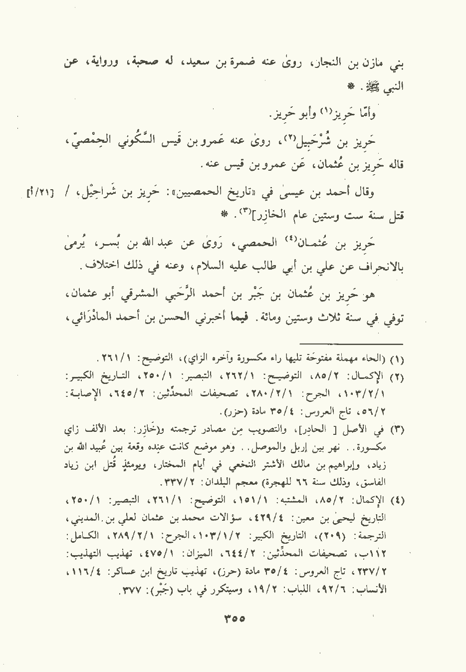 حَرِيز بن عُثْمان الحمصي رَوَى عن عَبد الله بن بُسْر يُرْمى بالانحراف عن علي بن أبي طالب عليه السَّلام وعنه في ذلك اختلاف.