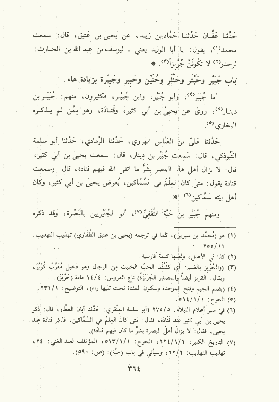 باب جُبَيْر وحَبْتَر وحَنْثَر وحُنَيْن وحَبِير وجَبِيرة بزيادة هاء.
