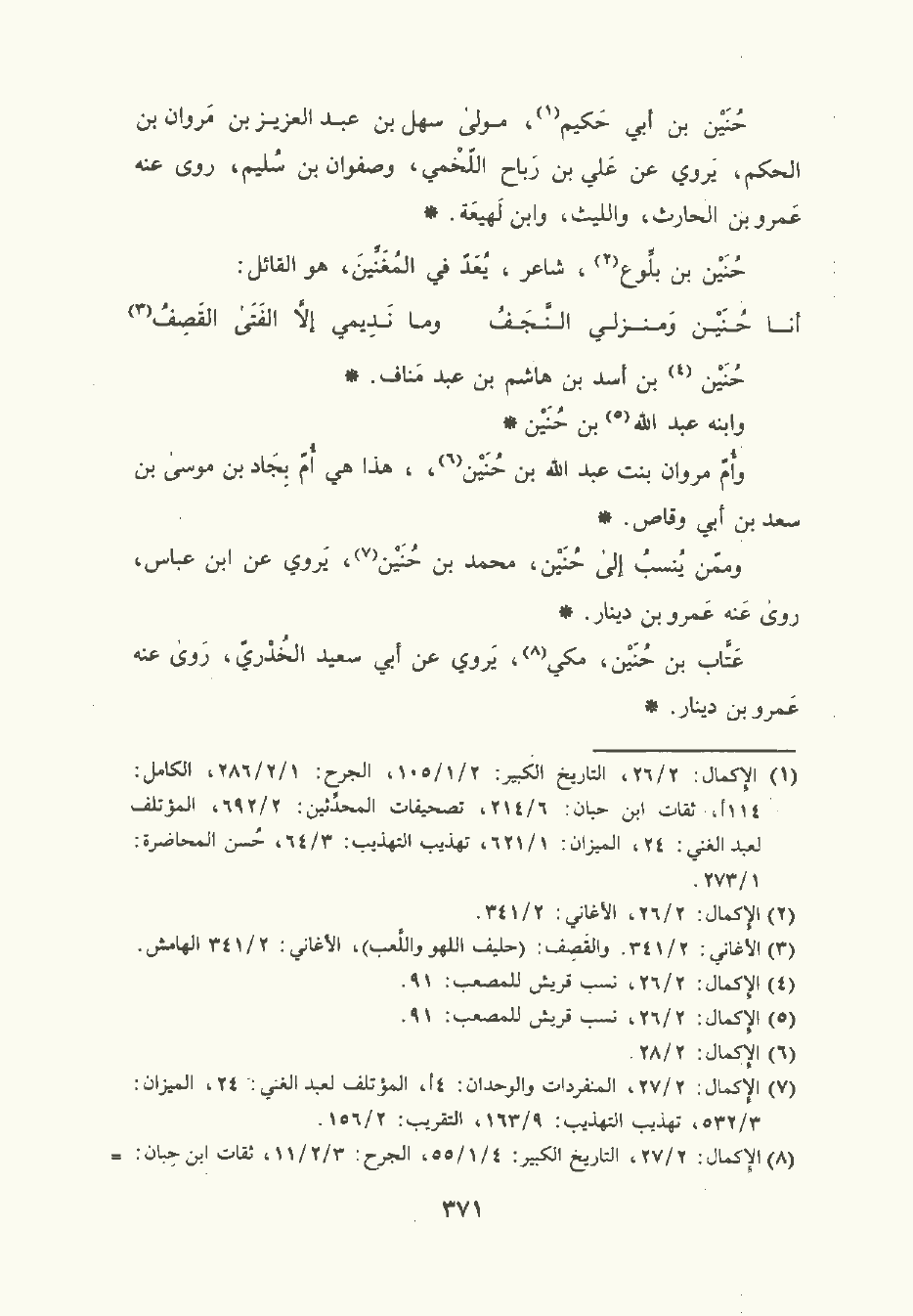 وممن ينسب إلى حنين مُحمَّد بن حُنَين يَرْوِي عن ابن عَبَّاس، رَوَى عنه عَمْرو بن دِينَار.