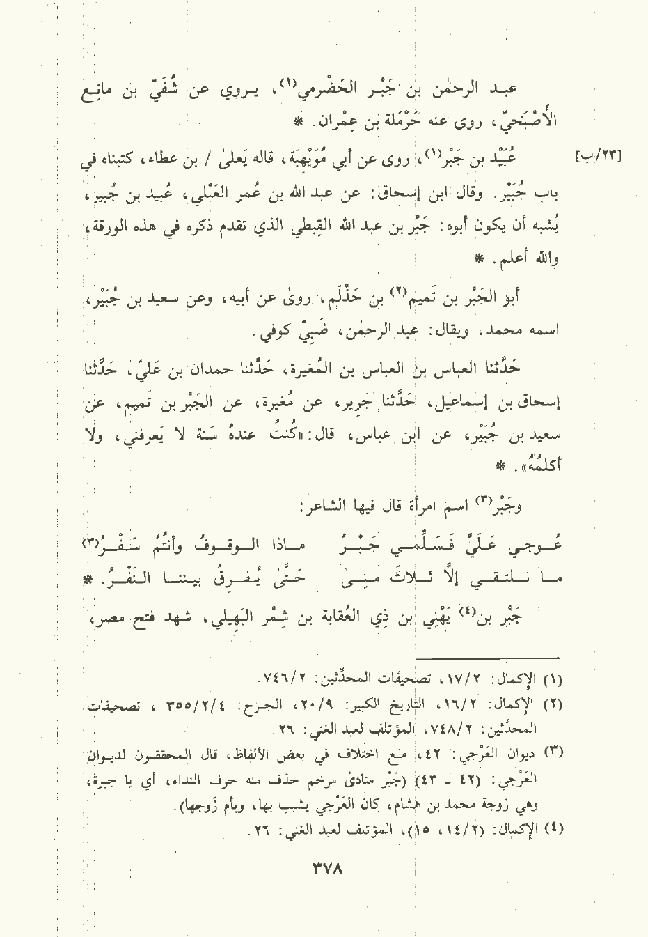 حَدَّثَنا العَبَّاس بن العَبَّاس بن المُغِيرَة , حَدَّثَنا حمدان بن علي , حَدَّثَنا إسحاق بن إسماعيل , حَدَّثَنا جَرِير , عن مُغِيرَة , عن الجَبْر بن تَمِيم , عن سَعِيد بن جُبَيْر , عن ابن عَبَّاس قال: كنت عنده سنة لا يعرفني ولا أكلمه.