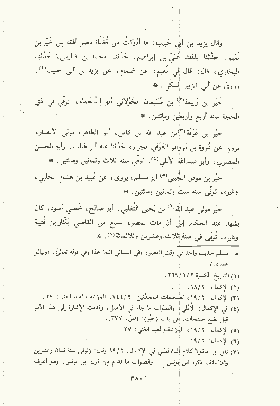 خَيْر مولى عَبد الله بن يَحْيى التَّغْلَبي أبو صالح , خَصي أسود , كان يشهد عند الحكام إلى أن مات بمصر سمع من القاضي بَكَّار بن قُتَيْبة وغيره , توفي في سنة ثلاث وعشرين وثلاثمِئَة.