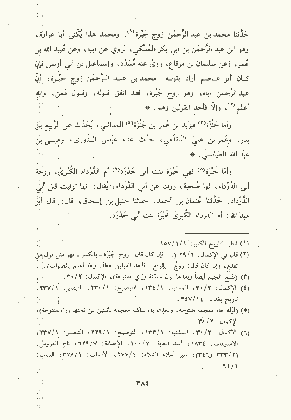 وأمَّا خَيْرَة فهي خَيْرَة بنت أبي حَدْرَد أم الدَّرْدَاء الكبرى زوجة أبي الدَّرْدَاء لها صُحْبَة روت , عَن أبي الدَّرْدَاء يقال: إنها توفيت قبل أبي الدَّرْدَاء. حَدَّثَنا عُثْمان بن أحمد , حَدَّثَنا حَنْبل بن إسحاق قال: قال أبو عبد الله: أم الدَّرْدَاء الكُبْرى خَيْرَة بنت أبي حَدْرَد.