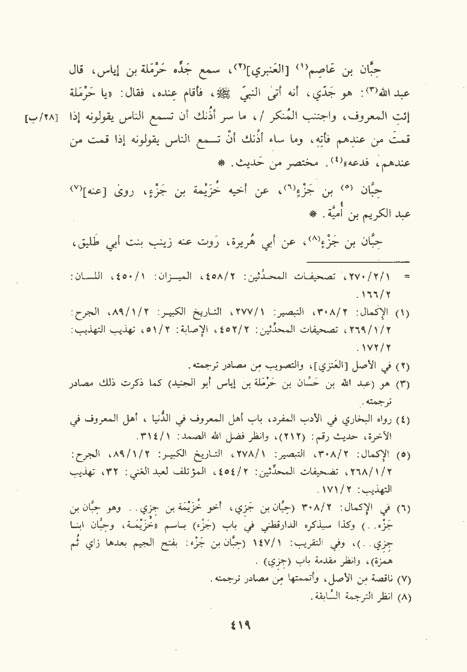 حِبَّان بن جَزْء , عن أخيه خُزَيْمة بن جزء، رَوَى عنه عبد الكريم بن أمية.