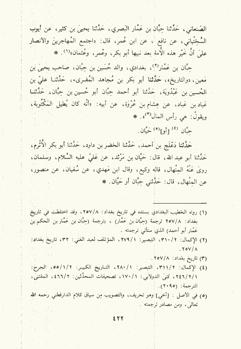 حِبَّان بن عَمَّار بغدادي والد حُسَين بن حبان صاحب يَحْيى بن مَعِين والتاريخ , حَدَّثَنا أبو بَكْر بن مُجَاهد المُقْرىء , حَدَّثَنا علي بن الحُسَين بن عبدوية , حَدَّثَنا أبو أحمد حِبَّان أبو حُسَين بن حِبَّان , حَدَّثَنا عَباد بن عَباد , عن هشام بن عُرْوة , عَن أبيه: أنه كان يطيل المكتوبة ويقول: هي رأس المال.