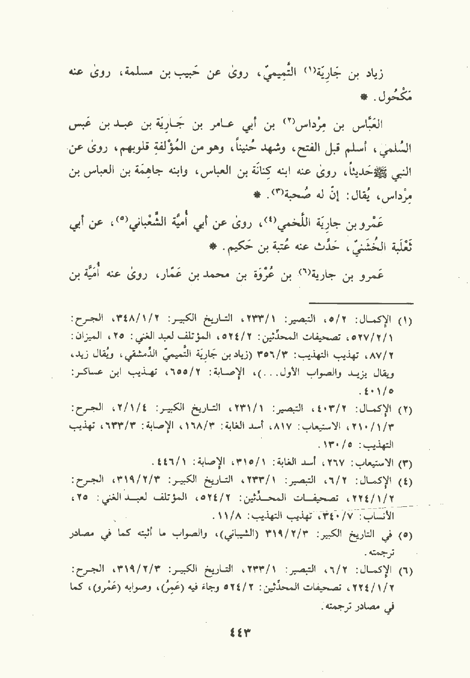 العَبَّاس بن مرداس بن أبي عامر بن جَارِيَة بن عبد بن عَبْس السُّلَمِي أسلم قبل الفتح وشهد حنينا وهو من المؤلفة قلوبهم رَوَى عن النَّبِيّ صلى الله عليه وسلم حديثا، رَوَى عنه ابنه كِنَانة بن العَبَّاس وابنه جاهمة بن العَبَّاس بن مرداس يقال إن له صُحْبَة.