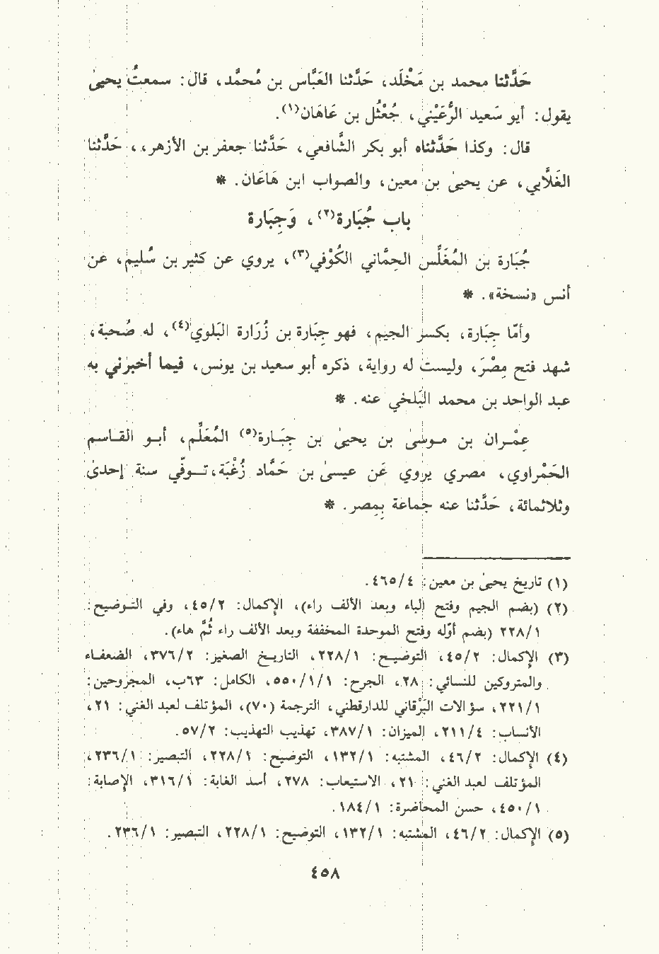 وأمَّا جِبَارة بكسر الجيم فهو جِبَارة بن زُرَارة البَلوي له صُحْبَة شهد فتح مِصْر وليست له رواية ذكره أبو سَعِيد بن يُونُس فيما أَخْبَرني به عبد الواحد بن مُحمَّد البَلْخِيّ عنه.