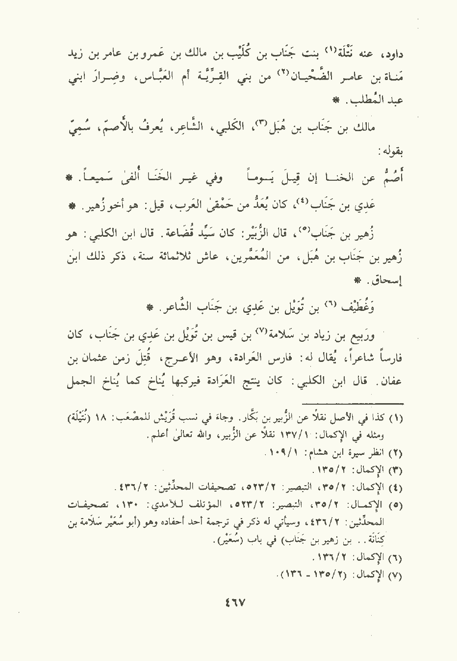 زُهَير بن جَنَاب قال الزُّبَيْر: كان سيد قُضَاعَة. قال ابنُ الكَلْبي: هو زُهَير بن جَنَاب بن هُبَل من المُعَمَّرين عاش ثلاثمِئَة سنة ذكر ذلك ابن إسحاق.
