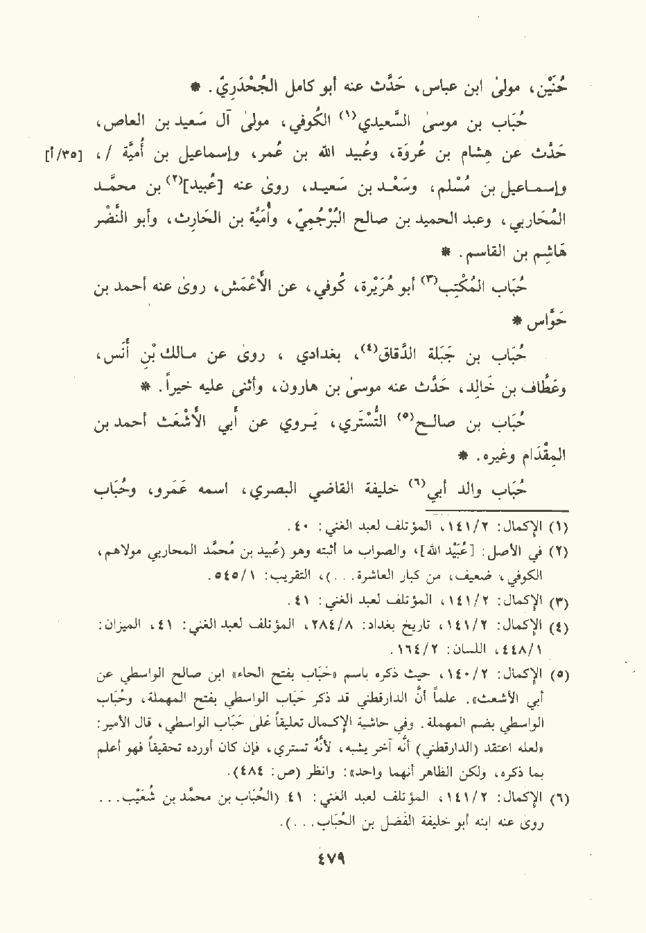 حُبَاب بن موسى السعيدي الكوفي مولى آل سَعِيد بن العاص حدث عن هشام بن عُرْوة وعُبَيد الله بن عُمَر وإسماعيل بن أمية وإسماعيل بن مُسْلم وسَعْد بن سَعِيد، رَوَى عنه عبيد بن مُحمَّد المُحاربي وعبد الحميد بن صالح البُرْجُمِيّ وأُمَيَّة بن الحَارِث وأبو النَّضر هاشم بن القَاسِم.