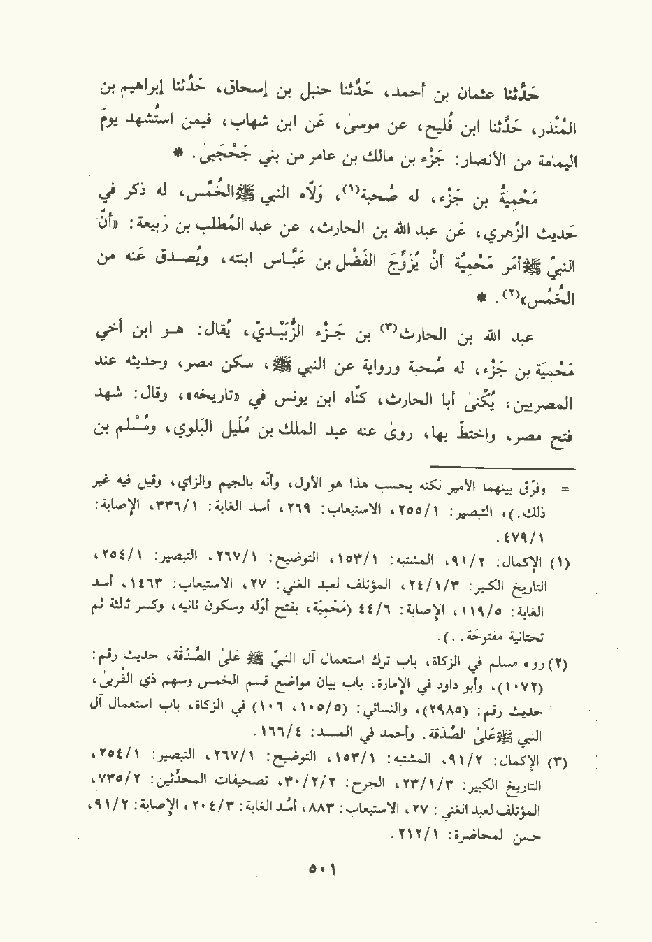 حَدَّثَنا عُثْمان بن أحمد , حَدَّثَنا حَنْبل بن إسحاق , حَدَّثَنا إبراهيم بن المُنْذر , حَدَّثَنا ابن فُلَيْح , عن موسى , عن ابن شِهَاب فيمن استشهد يوم اليمامة من الأَنْصَار: جَزْء بن مالك بن عامر من بني جحجبي.