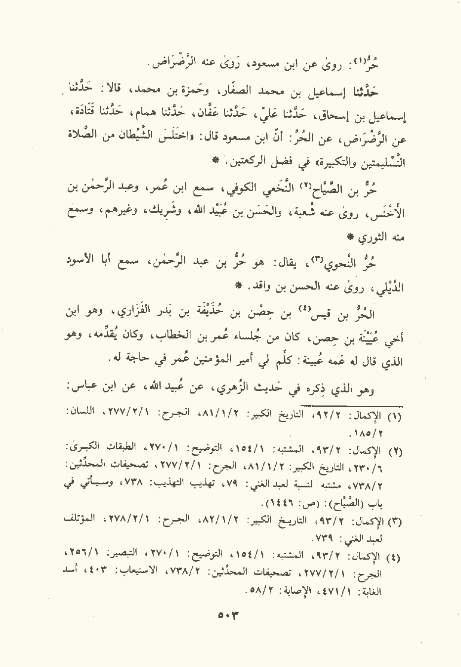 حُرُّ: رَوَى عن ابن مسعود، رَوَى عنه الرَّضْرَاض.