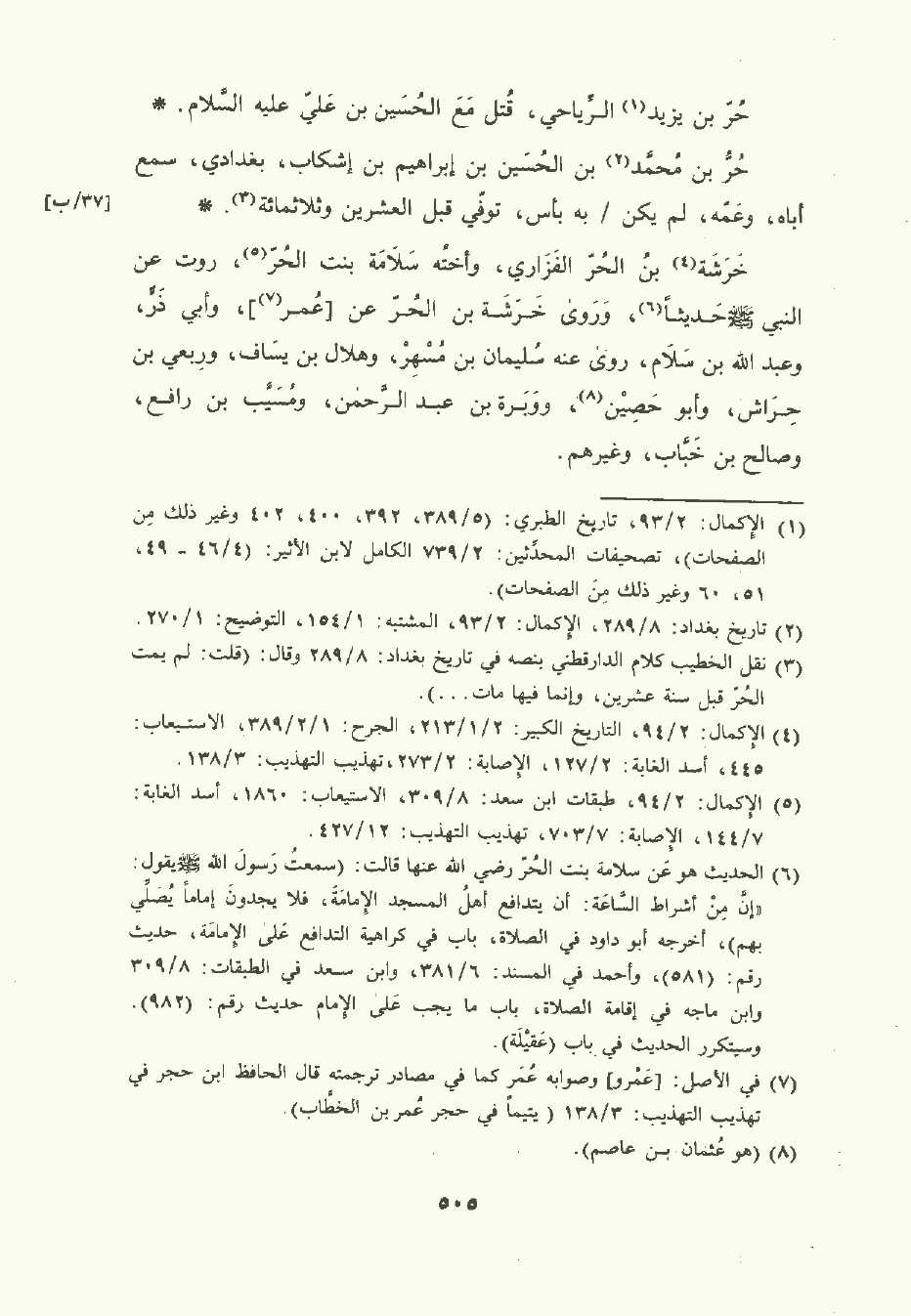 حُرُّ بن مُحمَّد بن الحُسَين بن إبراهيم بن إشكاب بغدادي سمع أباه وعمه لم يكن به بأس توفي قبل العشرين وثلاثمِئَة.