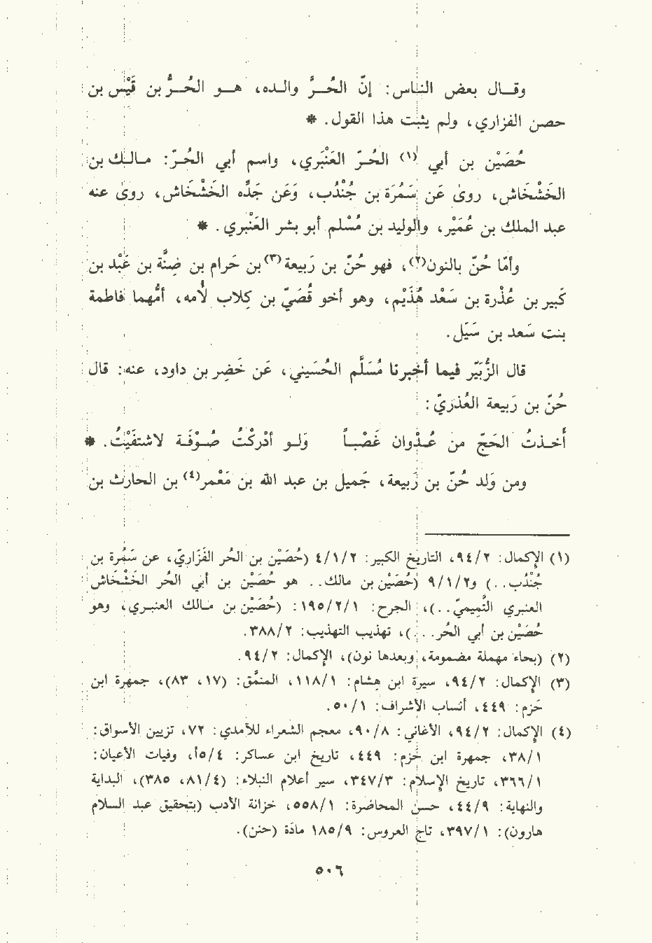 وأمَّا حُنَّ بالنون فهو حُنّ بن رَبِيعَة بن حَرَام بن ضِنَّة بن عَبْد بن كَبِير بن عُذْرَة بن سَعْد هُذَيْم وهو أخو قُصَيّ بن كلاب لأمه أمهما فاطمة بنت سَعْد بن سَيَل.