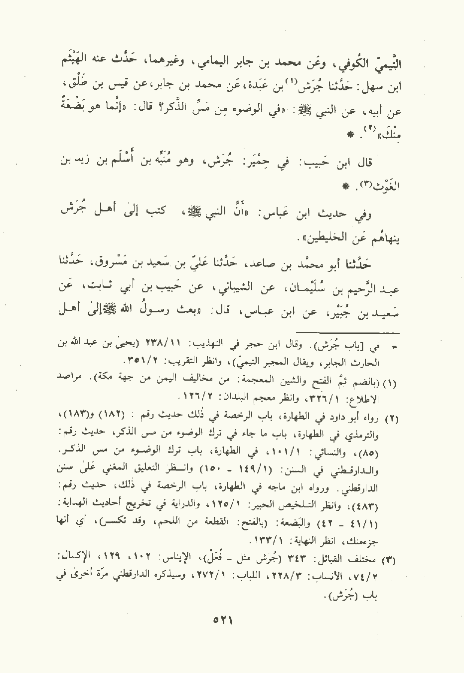 حَدَّثَنا أبو مُحمَّد بن صَاعِد , حَدَّثَنا عَليّ بن سَعِيد بن مَسْروق , حَدَّثَنا عبد الرحيم بن سُلَيمان , عن الشَّيْبَاني , عن حَبيب بن أبي ثابت , عن سَعِيد بن جُبَيْر , عن ابن عَبَّاس قال: بعث رسولُ الله صلى الله عليه وسلم إلى أهل جُرَش , يَنْهَاهُم عن خَليطِ التَّمْر والزَّبيب والتَّمْرِ والبُسْرِ.