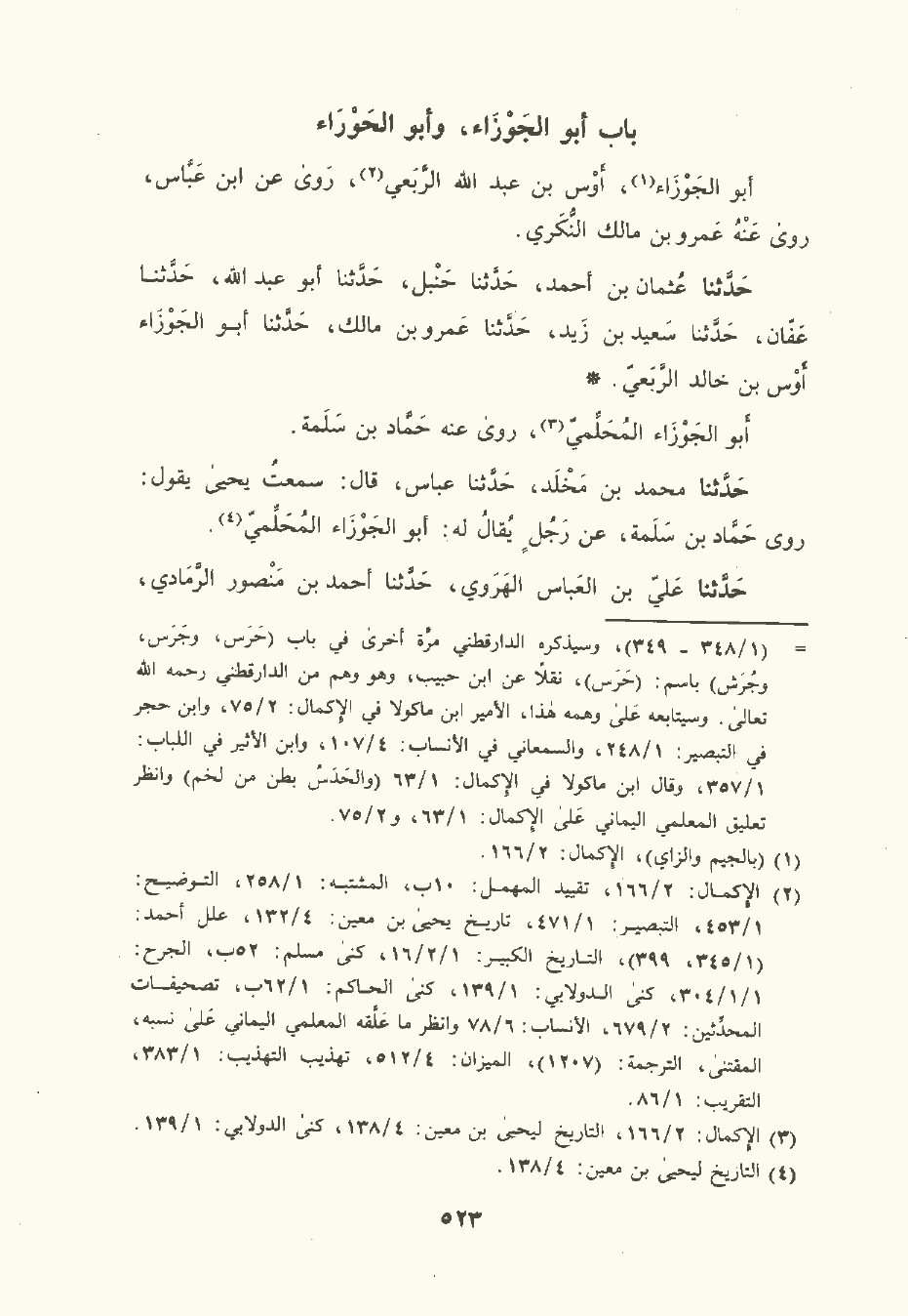 حَدَّثَنا مُحمَّد بن مَخْلَد، حَدَّثَنا عَبَّاس , قال: سَمِعتُ يحيى يقول: رَوَى حَمَّاد بن سَلَمة , عن رَجُلٍ يُقالُ له: أبو الجَوْزَاء المُحَلِّميّ.