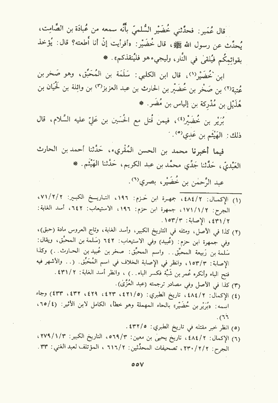 بُرَيْر بن خُضَيْر فيمن قتل مع الحُسَين بن علي عليه السَّلام قال ذلك: الهَيْثَم بن عَدِي.