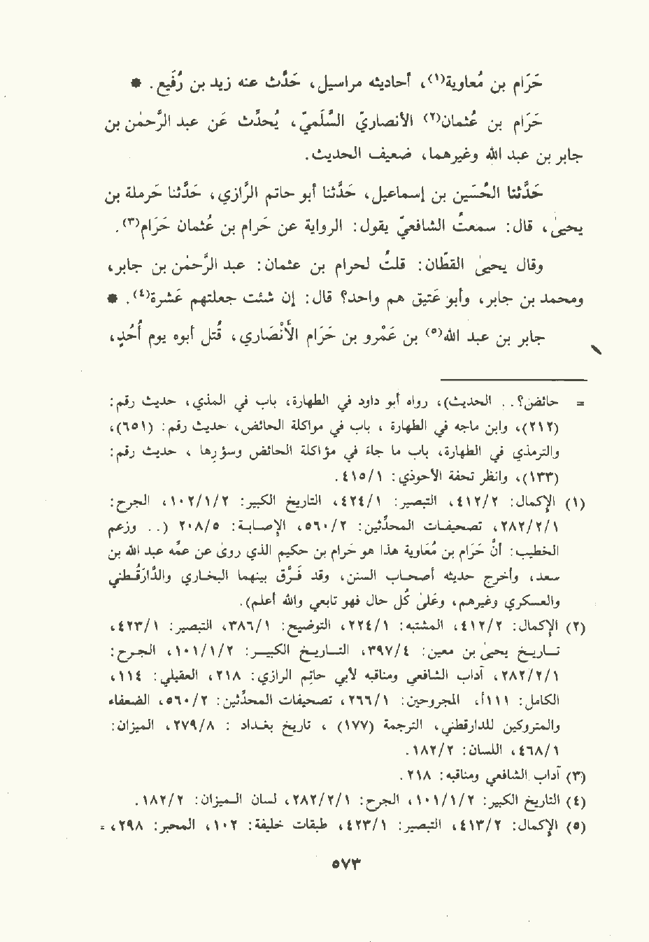 وقال يَحْيى القَطَّان: قلت لحَرَام بن عُثْمان: عبد الرَّحْمن بن جابر , ومُحمَّد بن جابر , وأبو عتيق هم واحد؟ قال: إن شئت جعلتهم عشرة.