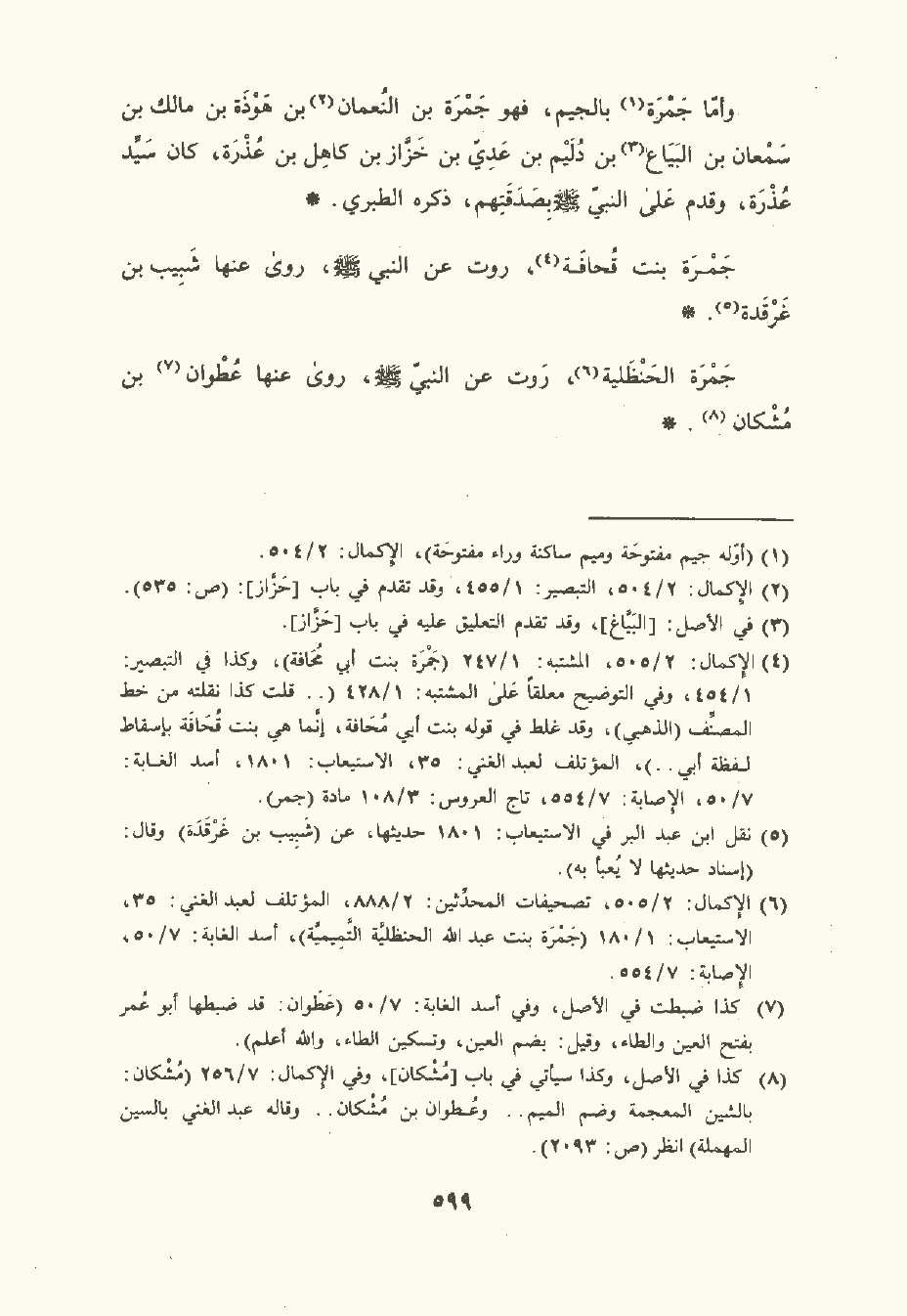وأمَّا جَمْرَة بالجيم , فهو جَمْرَة بن النُّعْمان بن هوذة بن مالك بن سمعان بن البَيَاع بن دُليم بن عَدِيّ بن خَزَّاز بن كَاهِل بن عُذْرَة كان سَيِّد عُذْرَة , وقدم على النَّبِيّ صلى الله عليه وسلم بصدقتهم , ذكره الطَّبَريّ.