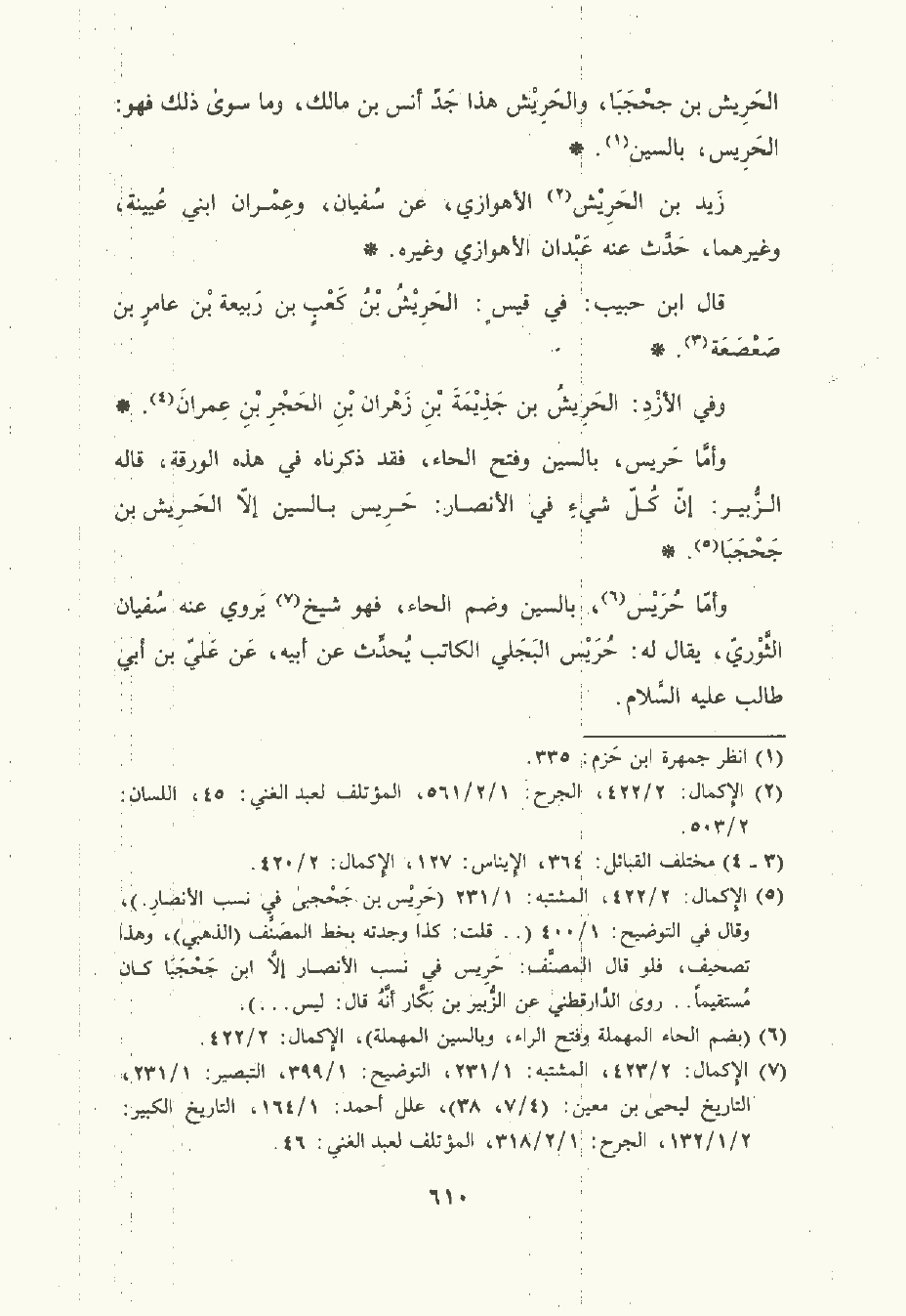 وأمَّا حُرَيْس بالسين وضم الحاء , فهو شَيْخ يَرْوي عنه سُفْيان الثَّوْريّ يقال له: حُرَيْس البَجَلي الكاتب , يُحَدِّث عن أبيه , عن عَلِيّ بن أبي طَالِب عليه السَّلام.