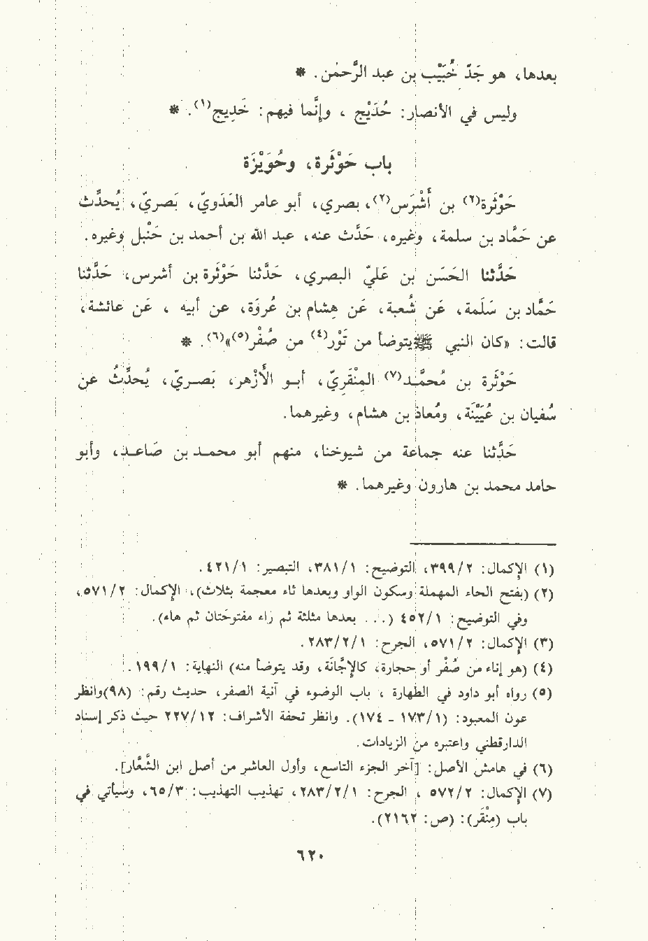 حَوْثَرَة بن أشرس , بصري أبو عامر العَدَويّ بصري , يُحَدِّث عن حَمَّاد بن سَلَمة وغيره , حَدَّث عنه عَبد الله بن أحمد بن حَنْبل وغيره.