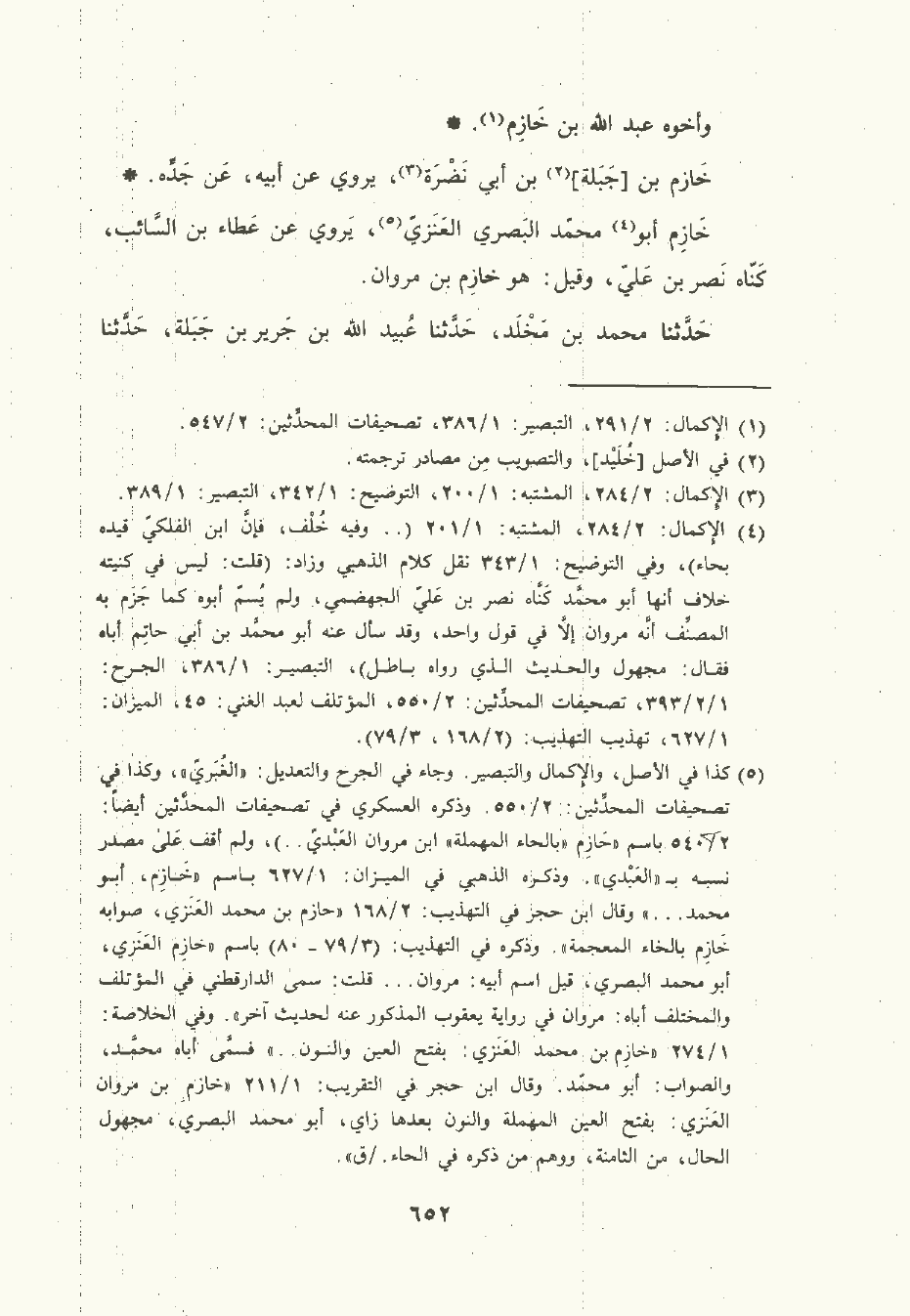 خَازِم أبو مُحمَّد البَصْريّ العنزي , يَرْوي عن عَطاء بن السَّائب , كناه نصر بن علي وقيل هو خَازِم بن مَرْوان.