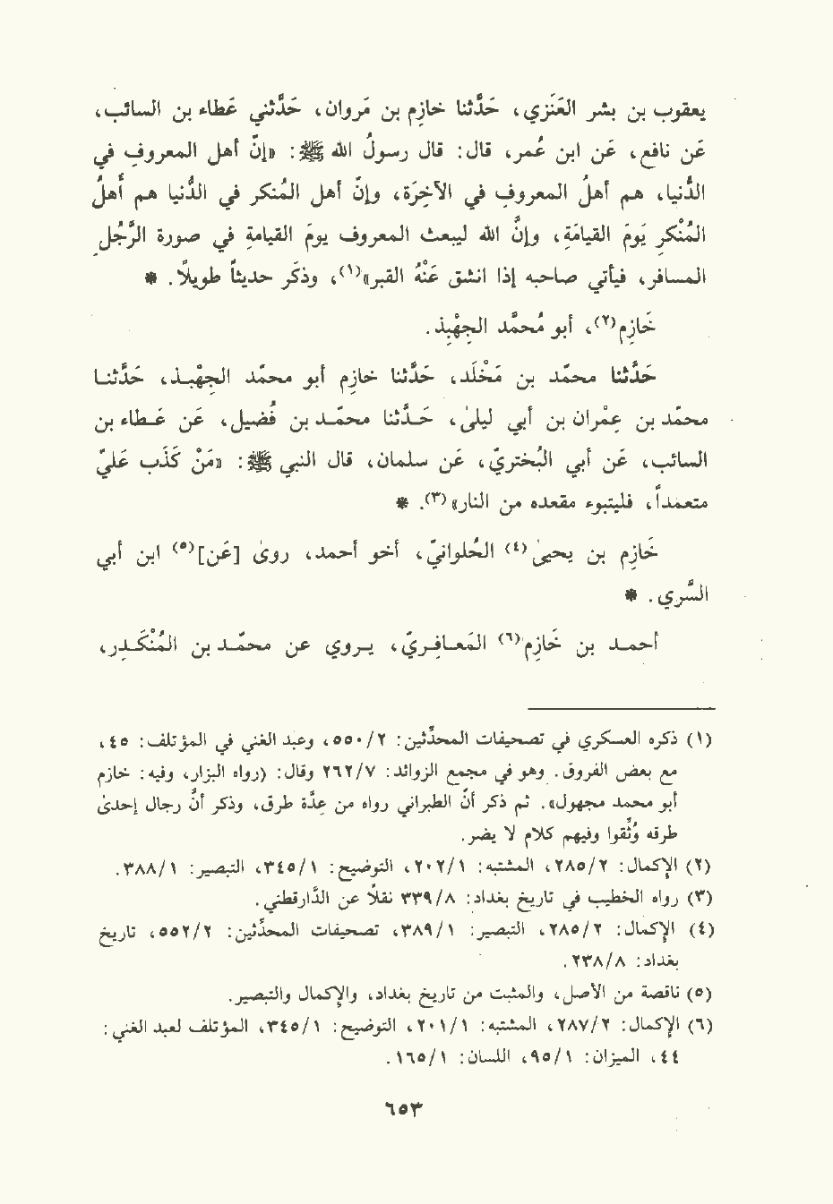 حَدَّثَنا مُحمَّد بن مَخْلَد , حَدَّثَنا خَازِم أبو مُحمَّد الجهبذ , حَدَّثَنا مُحمَّد بن عمران بن أبي ليلى , حَدَّثَنا مُحمَّد بن فضيل , عن عَطاء بن السَّائب، عن أبي البختري , عن سلمان قال النَّبِيّ صلى الله عليه وسلم: من كذب علي متعمدا فليتبوأ مقعده من النار.