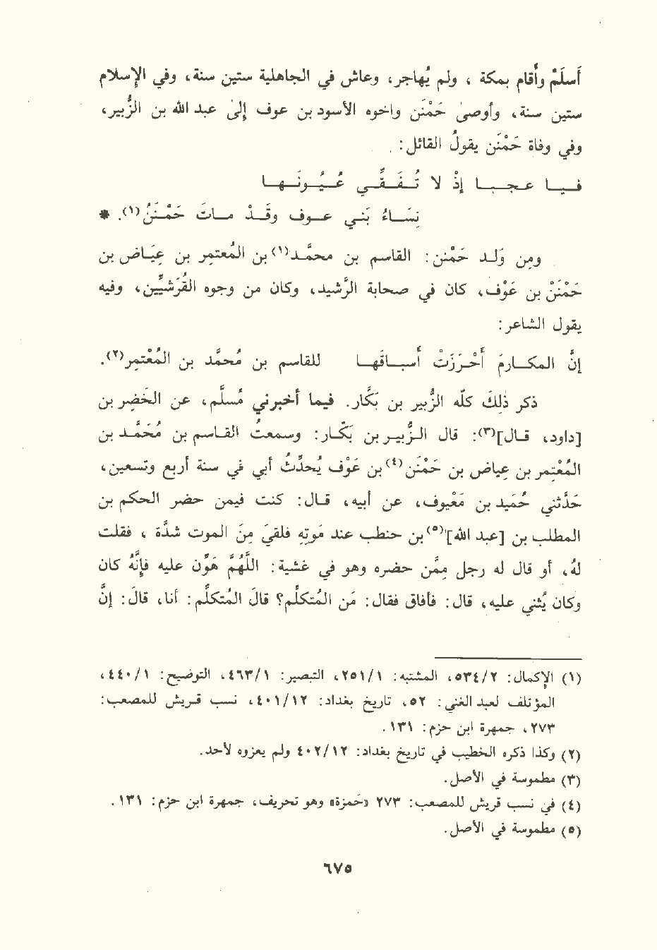 ومن ولد حَمْنَن: القاسم بن مُحمَّد بن المعتمر بن عياض بن حَمْنَن بن عَوْف كان في صحابة الرشيد , وكان من وجوه القرشيين وفيه يقول الشَّاعِر: