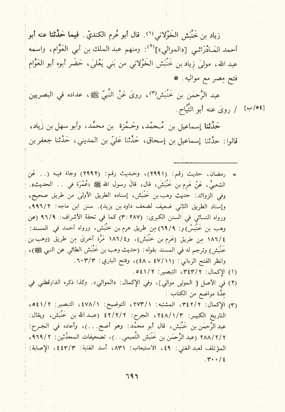 زياد بن خَنْبَش الخولاني. قال أبو عُرَم الكندي. فيما حَدَّثَنا عنه أبو أحمد المَادْرَائي الموالي: ومنهم عبد الملك بن أبي العوام واسمه عَبد الله مولى زياد بن خَنْبَش الخولاني من بني يَعْلَى حضر أبوه أبو العوام فتح مصر مع مواليه.