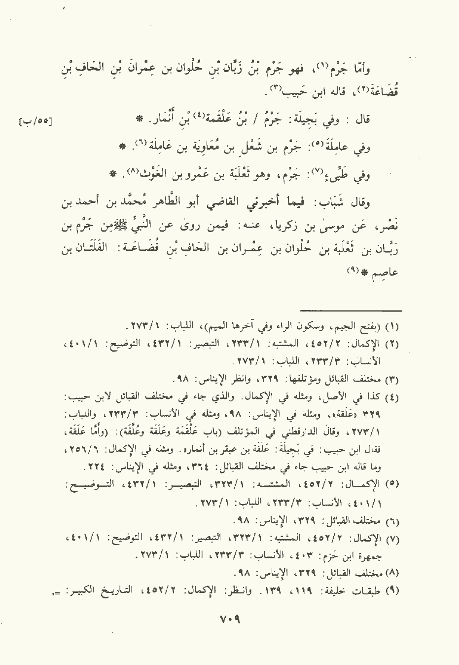 قال: وفي بَجِيلَة: جَرْم بن عَلْقَمة بن أنمار.