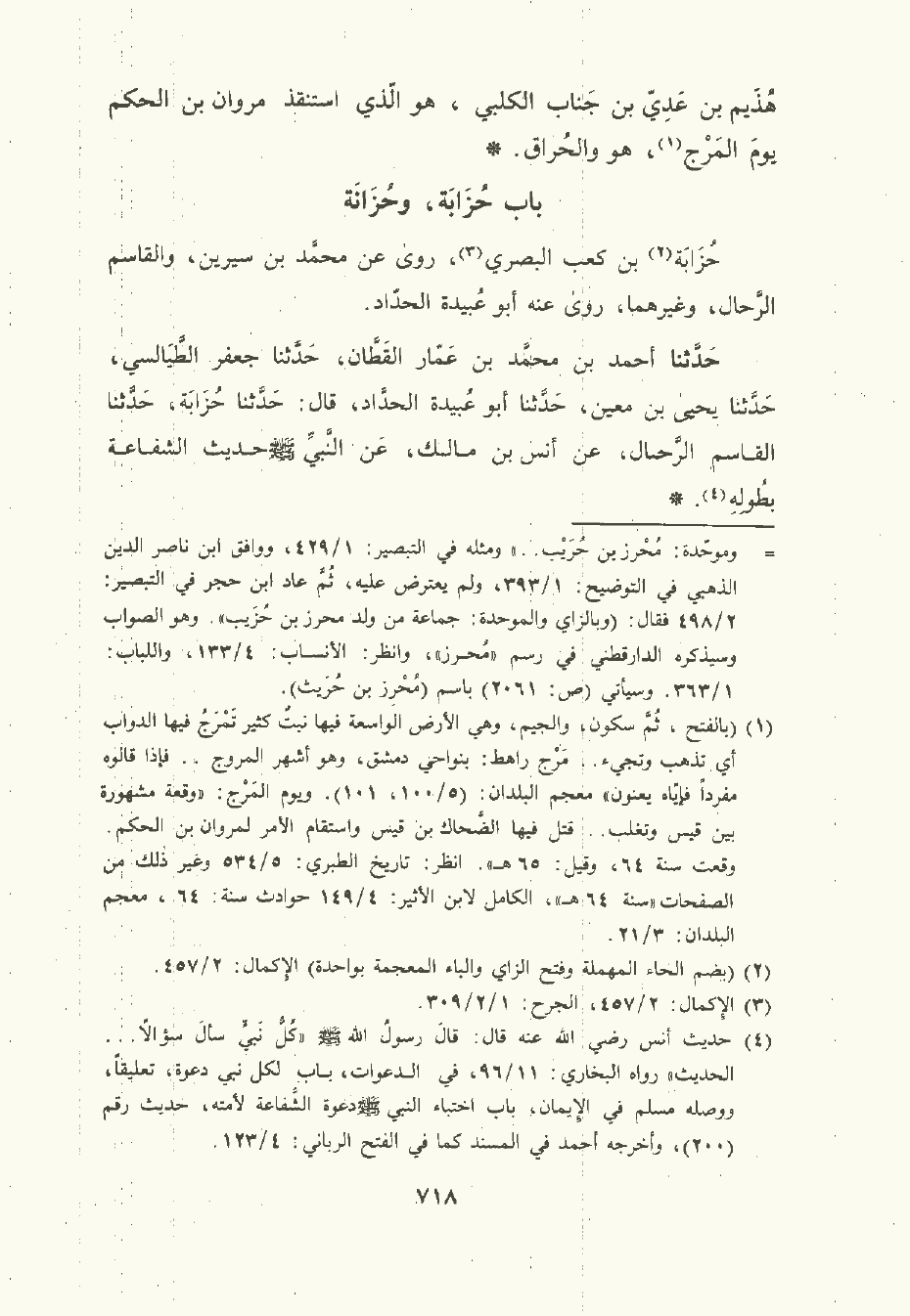 حَدَّثَنا أحمد بن مُحمَّد بن عمار القَطَّان , حَدَّثَنا جَعْفر الطَّيَالسِيّ , حَدَّثَنا يَحْيى بن مَعِين , حَدَّثَنا أبو عبيدة الحداد قال: حَدَّثَنا حُزَابة , حَدَّثَنا القاسم الرحال , عن أَنَس بن مَالِك , عن النَّبِيّ صلى الله عليه وسلم حديث الشَّفَاعة بطوله.