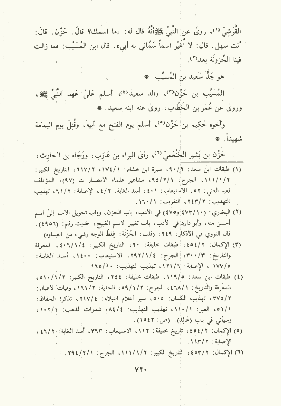 المُسَيَّب بن حَزْن والد سعيد أسلم على عهد النَّبِيّ صلى الله عليه وسلم , وروى عن عُمَر بن الخطاب، رَوَى عنه ابنه سعيد.