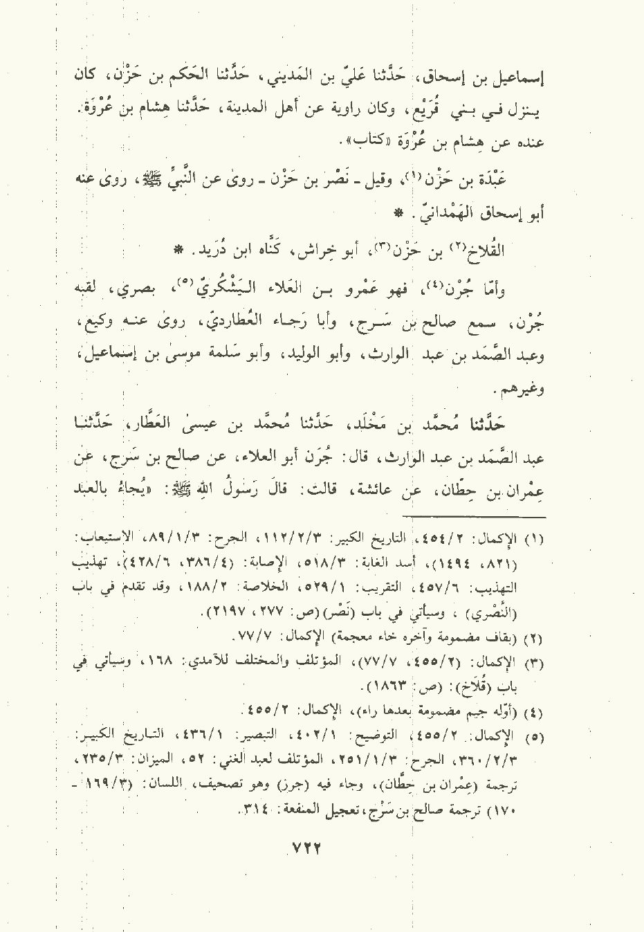 حَدَّثَنا مُحمَّد بن مَخْلَد , حَدَّثَنا مُحمَّد بن عيسى العطار , حَدَّثَنا عبد الصَّمَد بن عَبْد الوَارِث قال: جُرْن أبو العلاء , عن صالح بن سرج , عن عمران بن حطان , عن عائشة قالت: قال رسول الله صلى الله عليه وسلم: يجاء بالعبد القاضي العدل يوم القيامة فيلقى من شده الحساب ما يتمنى أنه لم يقض بين أحد في تمرتين.