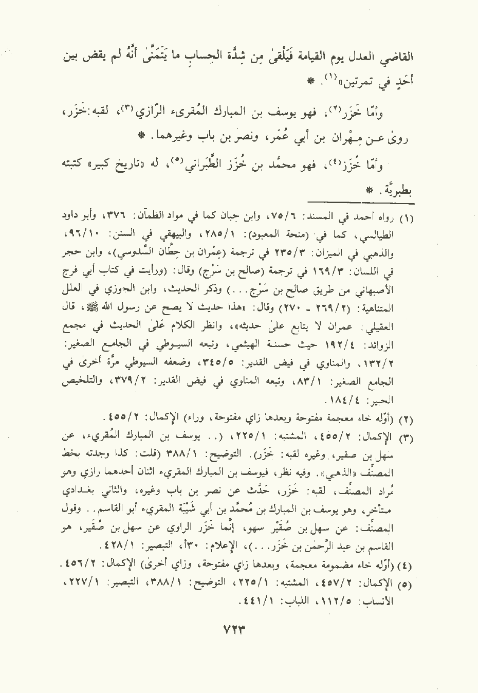وأمَّا خُزَز , فهو مُحمَّد بن خُزَر الطَّبَرَانِيّ له تاريخ كبير كتبته بطبرية.