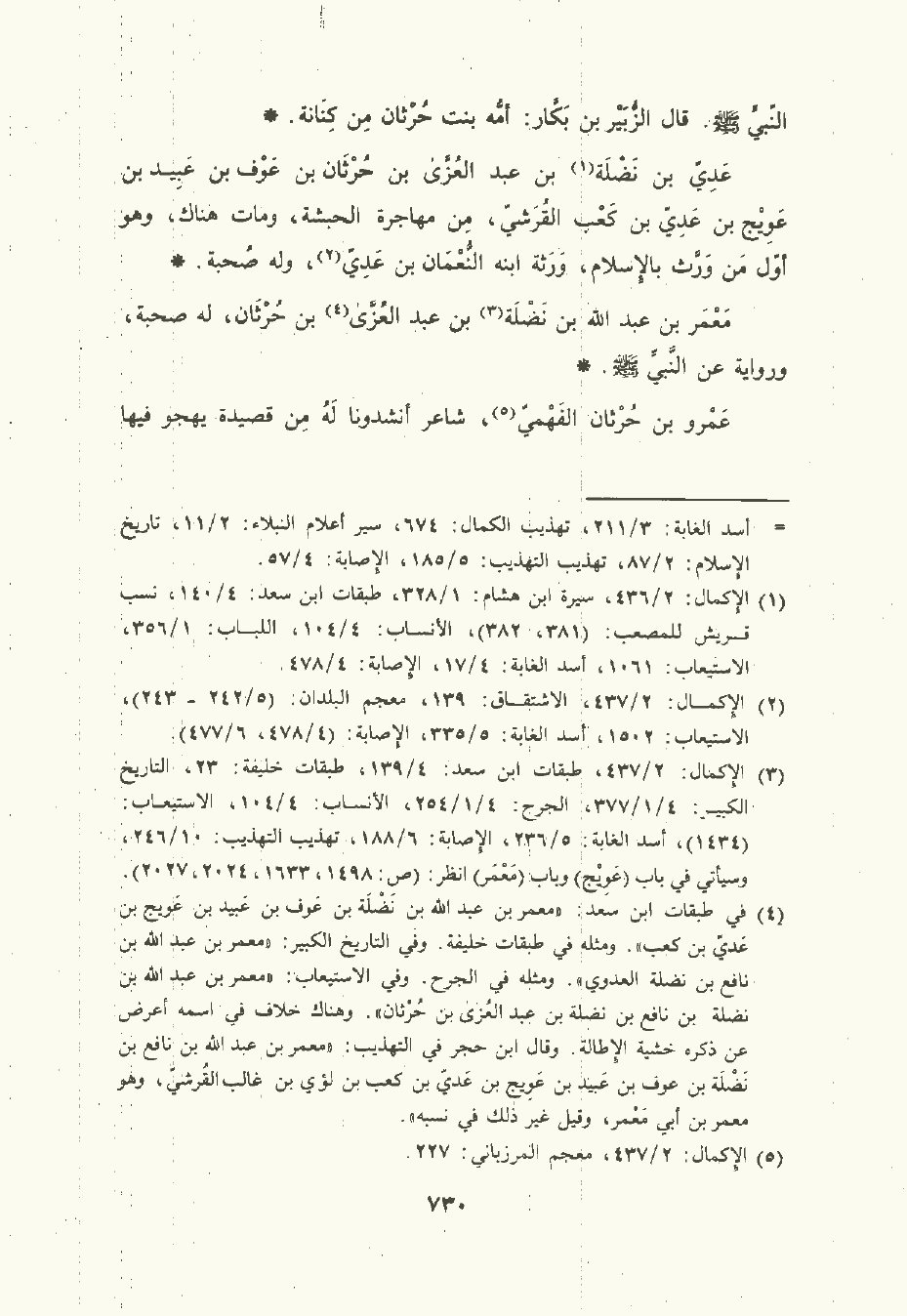 مَعْمَر بن عَبد الله بن نَضْلَة بن عبد العُزَّى بن حُرْثَان , له صُحْبة ورواية عن النَّبِيّ صلى الله عليه وسلم.
