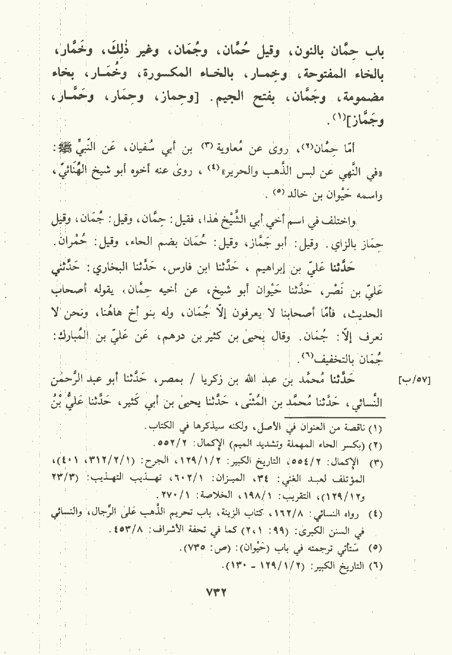 حَدَّثَنا علي بن إبراهيم , حَدَّثَنا ابن فارس , حَدَّثَنا البُخَاريّ , حَدَّثني علي بن نصر , حَدَّثَنا حَيْوان أبو شَيْخ , عن أخيه حِمَّان يقوله أصحاب الحديث فأما أصحابنا لا يعرفون إلا جُمَان وله بنو أخ هاهنا , ونحن لا نعرف إلا جُمَان. وقال يَحْيى بن كثير بن درهم , عن علي بن المبارك جُمَان بالتخفيف.