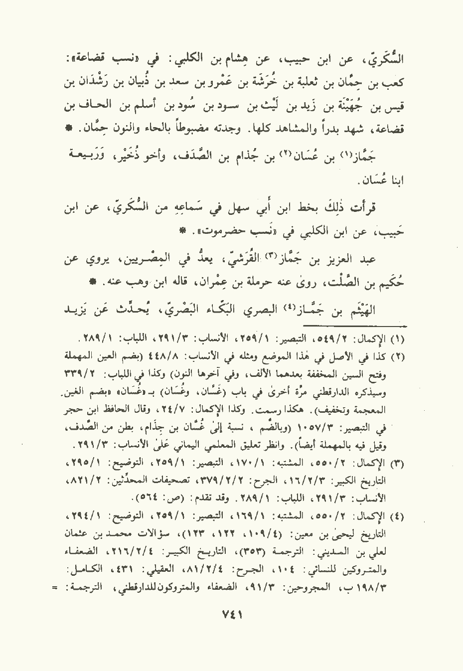 قرأت ذلك بخط ابن أبي سهل في سماعه من السُّكريّ، عن ابن حبيب، عن ابن الكَلْبيّ في نسب حَضَرَمَوت.