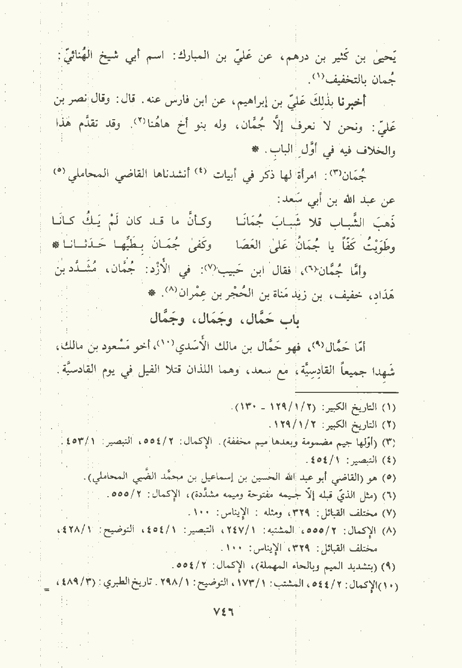 أخبرنا بذلك علي بن إبراهيم، عن ابن فارس عنه. قال: وقال نصر بن علي: ونحن لا نعرف إلا جمان وله بنو أخ هاهنا. وقد تقدم هذا والخلاف فيه في أول الباب.
