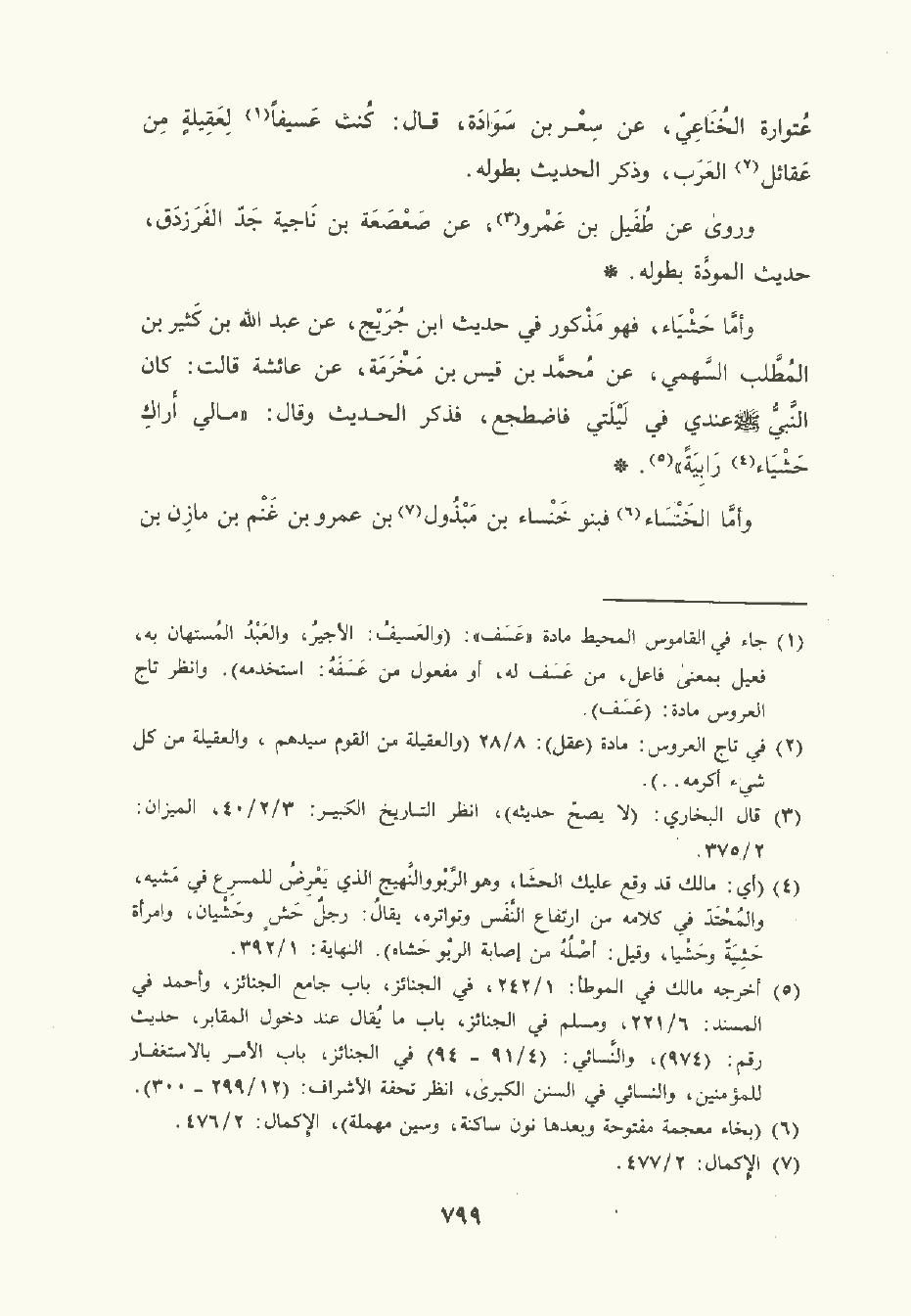 وأمَّا حَشْيَاء , فهو مذكور في حديث ابن جُرَيْج، عن عَبد الله بن كثير بن المطلب السهمي , عن مُحمَّد بن قَيْس بن مخرمة , عن عائشة قالت: كان النَّبِيّ صلى الله عليه وسلم عندي في ليلتي فاضطجع فذكر الحديث وقال: مالي أراك حَشْيَاء رابية.