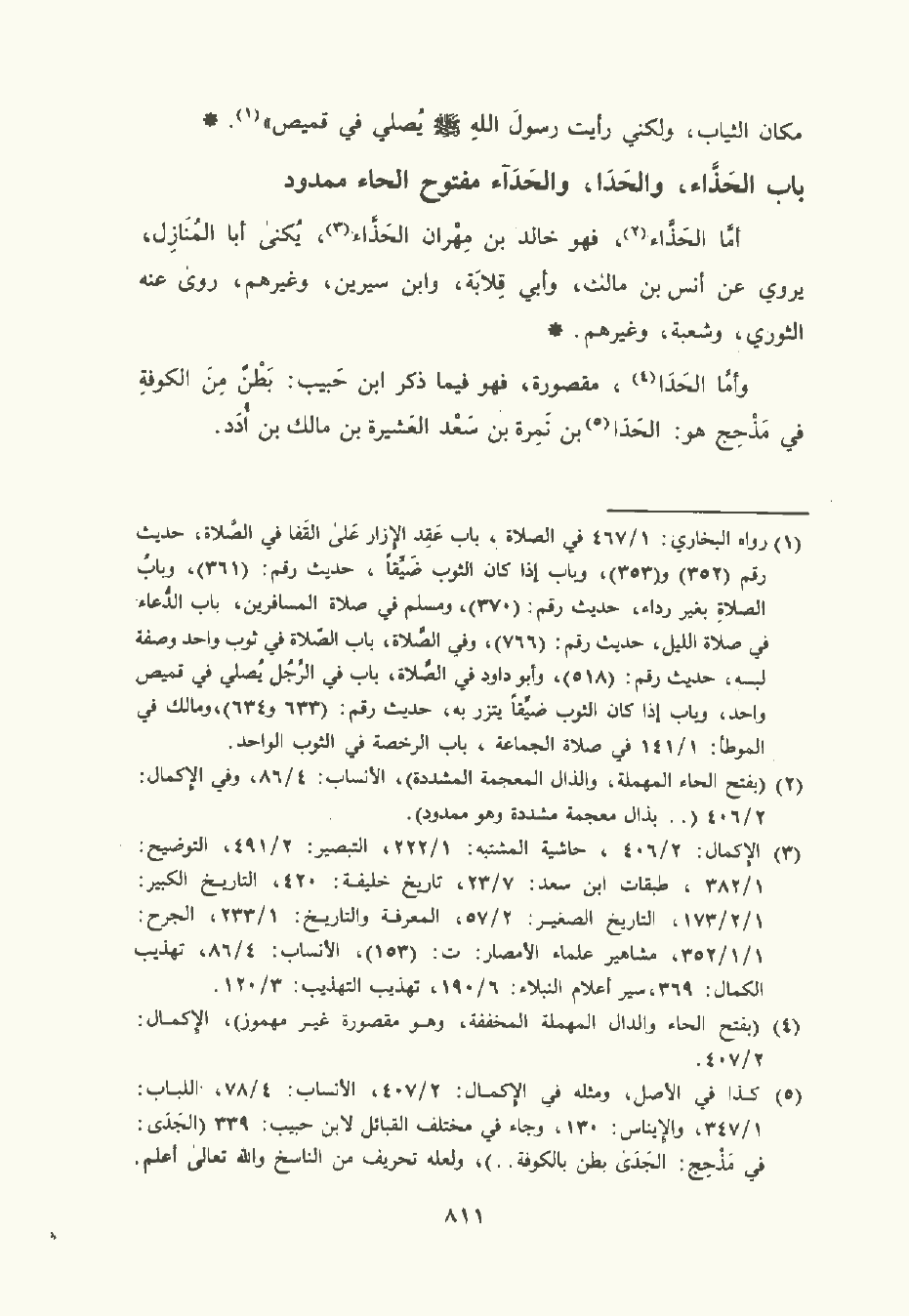 أمّا الحَذَّاء , فهو خالد بن مهران الحَذَّاء , يُكْنَى أبا المنازل , يَرْوي عن أَنَس بن مَالِك، وَأَبي قِلاَبَة , وابن سيرين , وغيرهم، رَوَى عنه الثَّوْريّ , وشُعْبَة , وغيرهم.