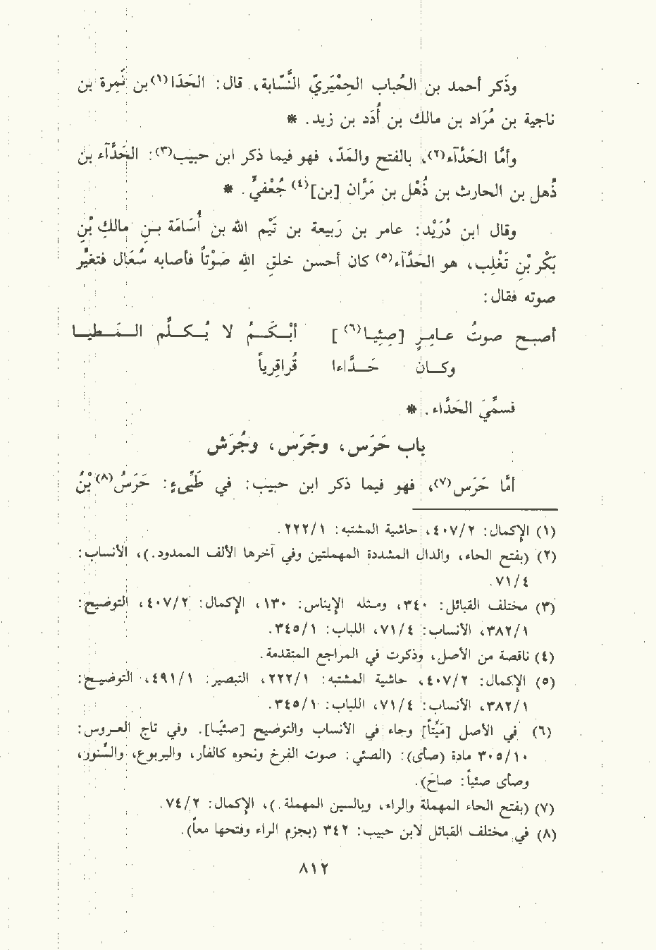 وأمَّا الحَدَّآء بالفتح والمد , فهو فيما ذكر ابن حبيب: الحدآء بن ذهل بن الحارث بن ذهل بن مران بن جعفي.