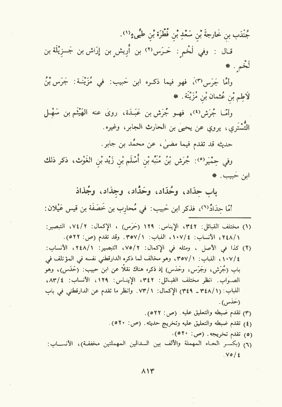 قال: وفي لخم: حرس بن أريش بن إراش بن جزيلة بن لخم.
