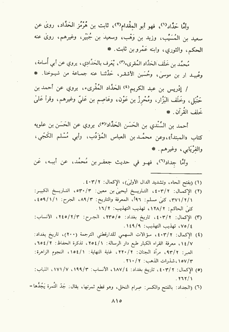 وأمَّا حَدَّاد , فهو أبو المِقْدام ثابت بن هُرْمُز الحداد , روى عن سعيد بن المُسَيَّب وزيد بن وَهْب وسعيد بن جبير , وغيرهم، رَوَى عنه الحكم , والثَّوْرِيّ , وابنه عَمْرو بن ثابت.