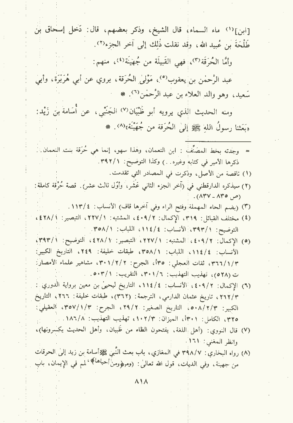 ومنه الحديث الذي يرويه أبو ظبيان الجنبي , عن أسامة بن زيد: بعثنا رسول الله صلى الله عليه وسلم إلى الحُرَقَة من جهينة.