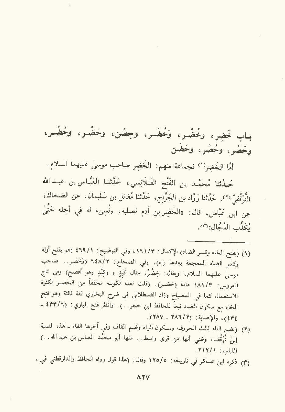 باب خَضِر وخُضْر وخُضَر وحِصْن وحَضْر وحُضْر وحَصْر وحُصْر وحَضَن.