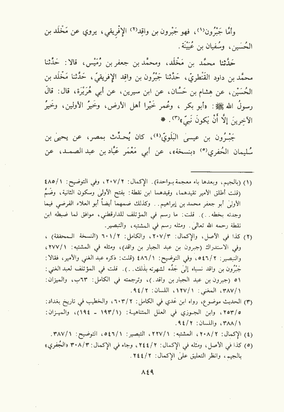 وأمَّا جَبْرُون , فهو جَبْرُون بن واقد الإفريقي , يَرْوي عن مخلد بن الحُسَين وسفيان بن عيينة.