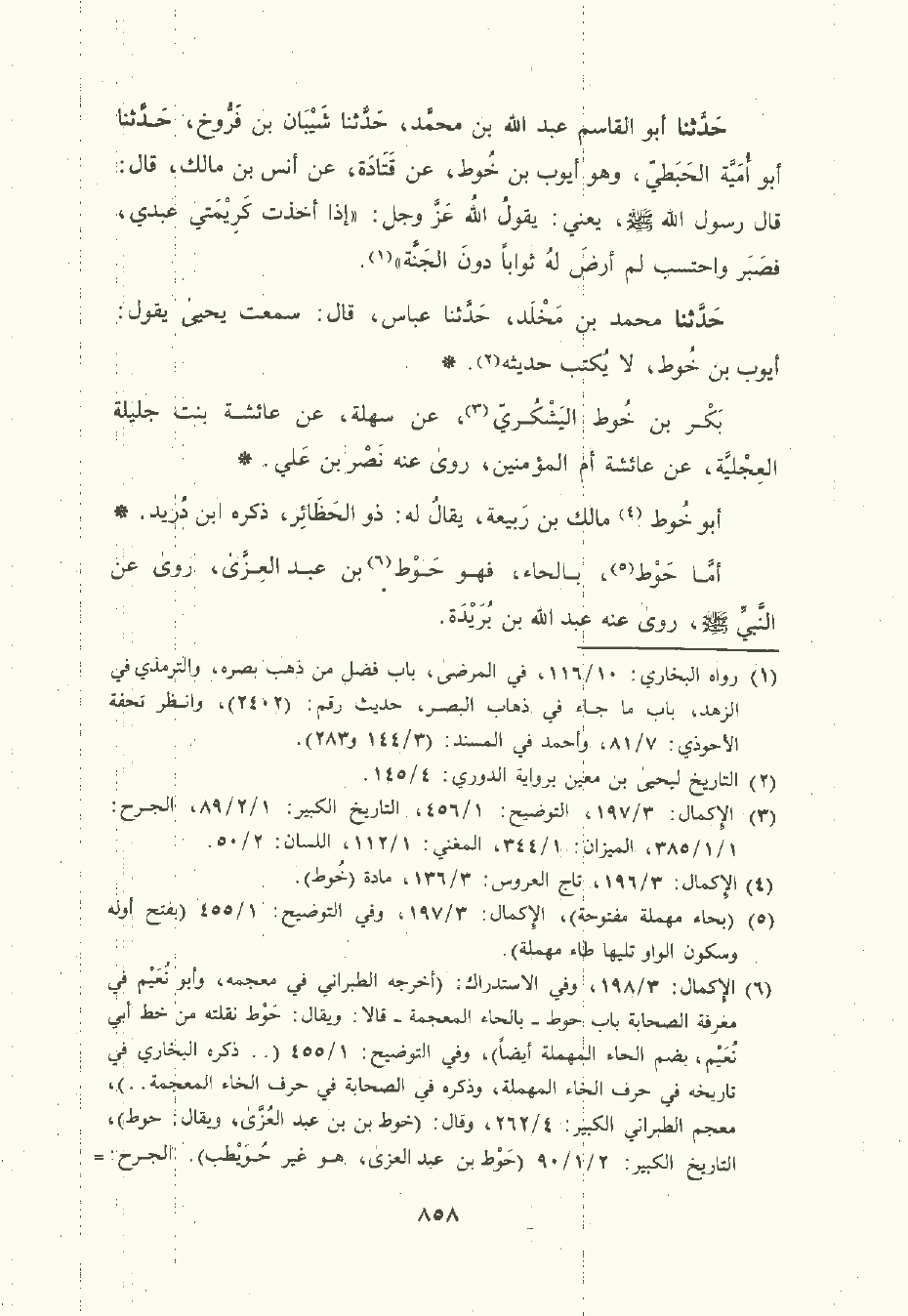 أمّا حَوْط بالحاء , فهو حَوْط بن عبد العزى , روى عن النَّبِيّ صلى الله عليه وسلم، رَوَى عنه عَبد الله بن بريدة.