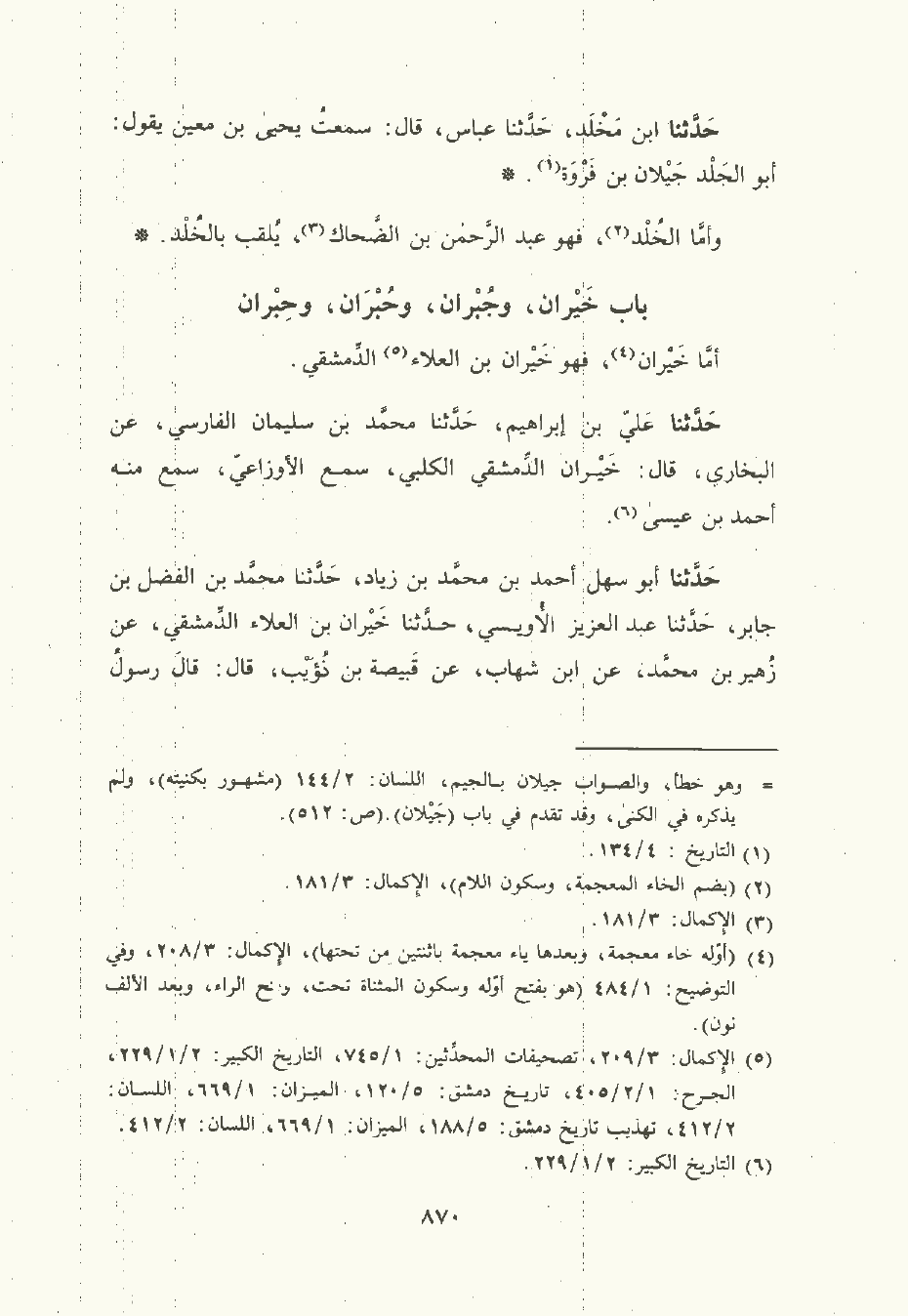 حَدَّثَنا علي بن إبراهيم , حَدَّثَنا مُحمَّد بن سُلَيْمان الفارسي , عن البُخَاريّ قال: خَيْرَان الدِّمَشْقيّ الكلبي سمع الأَوْزَاعِي سمع منه أحمد بن عيسى.