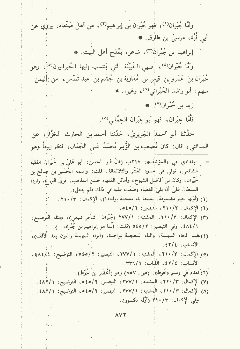 وأمَّا جُبْرَان , فهو جُبْرَان بن إبراهيم من أهل صنعاء , يَرْوي عن أبي قرة موسى بن طارق.